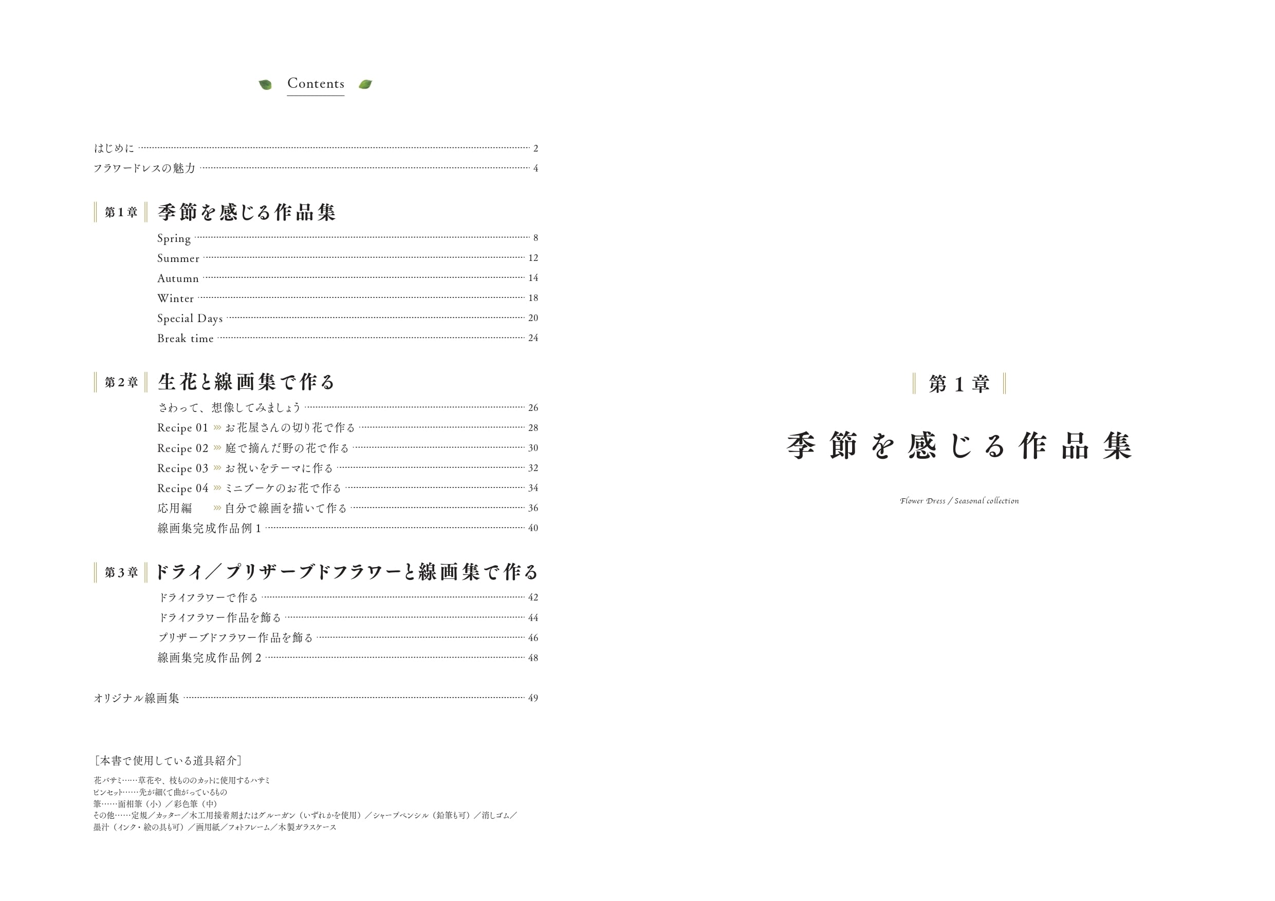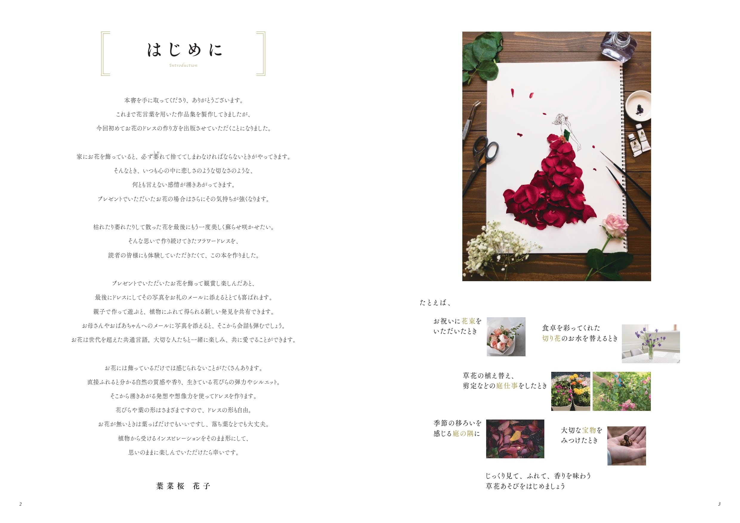 人気の作品集とお花一輪から作るドレスのレシピ、描きおろしの線画集をぎゅっと一冊に詰め込みました。