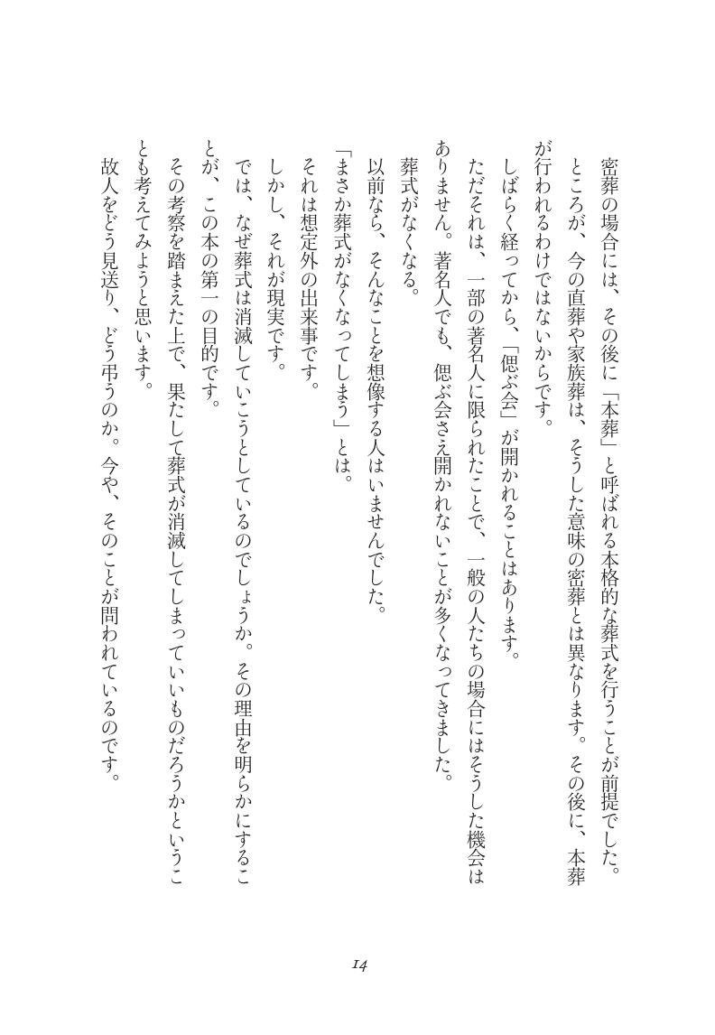 『0葬』、『葬式は要らない』と葬送に変化を与えたヒット本に続く、葬送の在り方を考えさせられる本です。