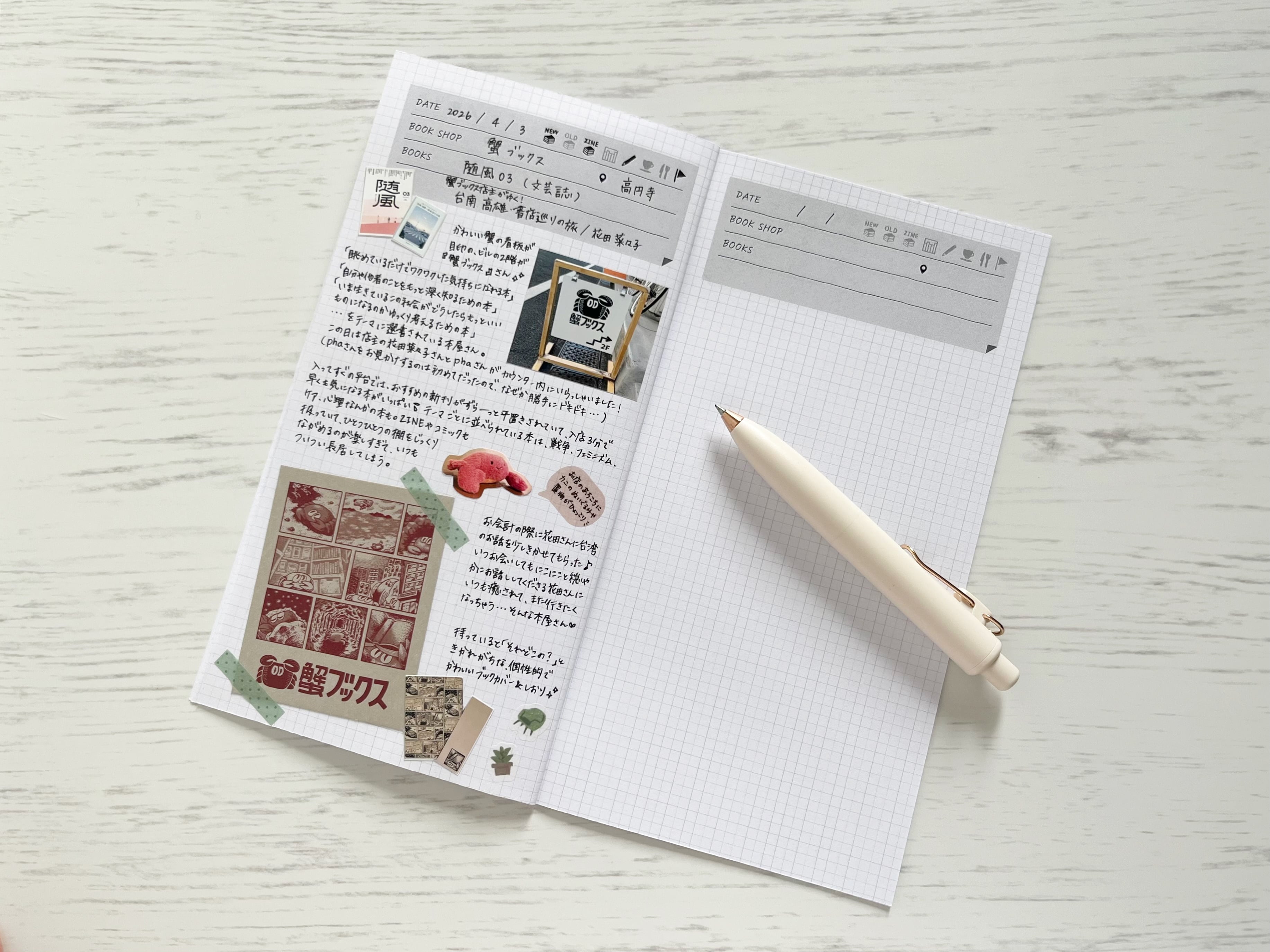 本屋ノートとは、本屋さんに行って出合った本やもの、見たこと、感じたことなどを書き留めておけるログノートです。